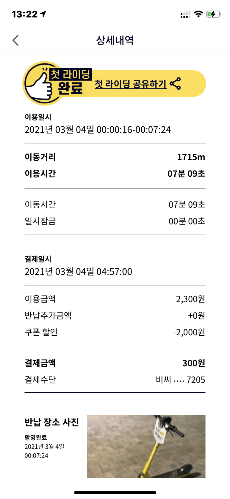 첫 라이딩 해봤는데 비용은 300원 나왔어요