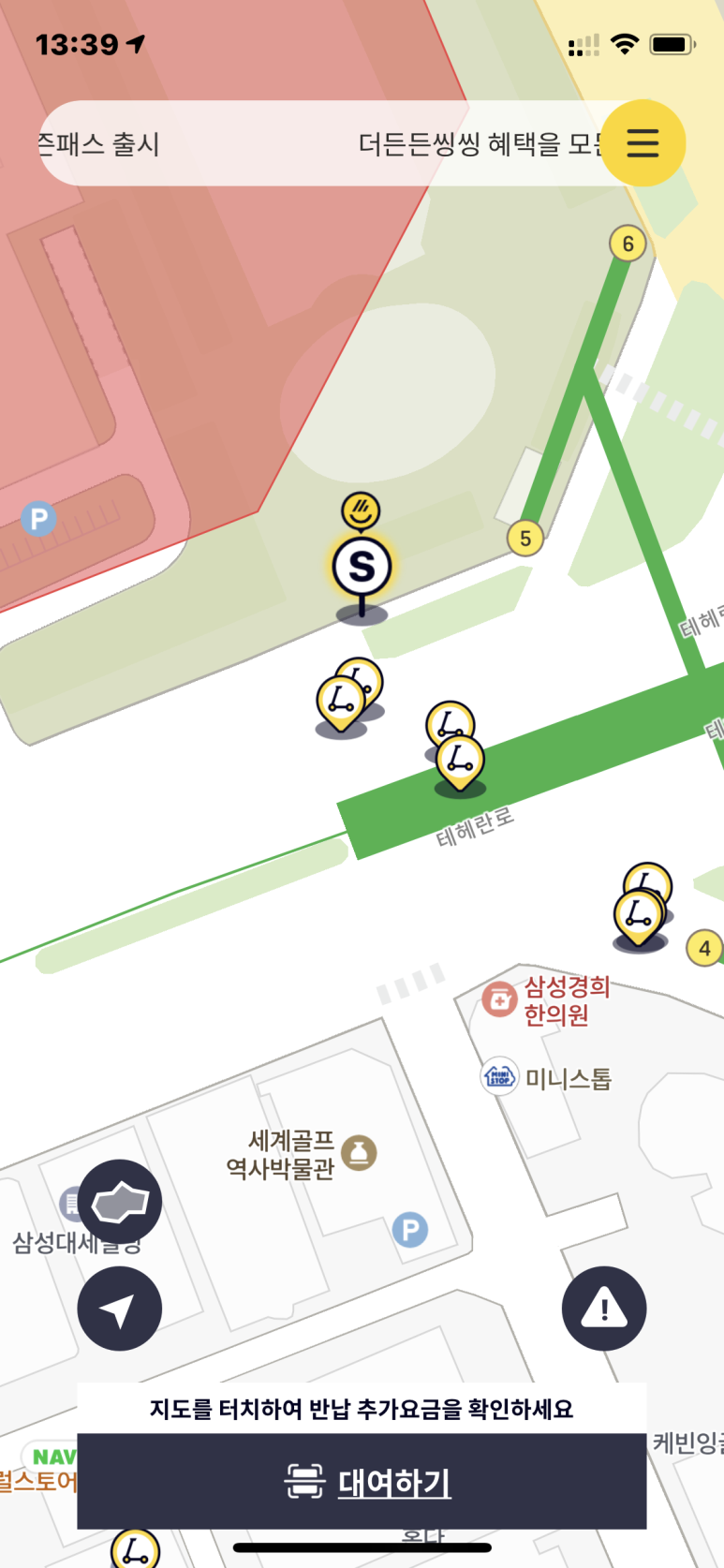 현재 씽씽 서비스 가능한 지역입니다